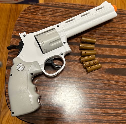 • My son loves nerf guns and he was so excited to receive this one. He loves that the little casings pop out the side and the paint color is cool.