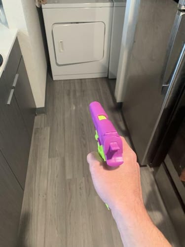 Our blasters can shoot up to 20-30 feet! Rest assured knowing you can play with them safely as getting hit by a pellet won't cause any bodily harm.
